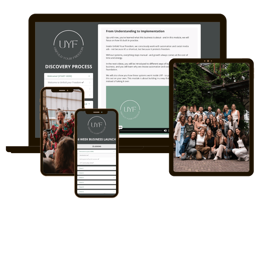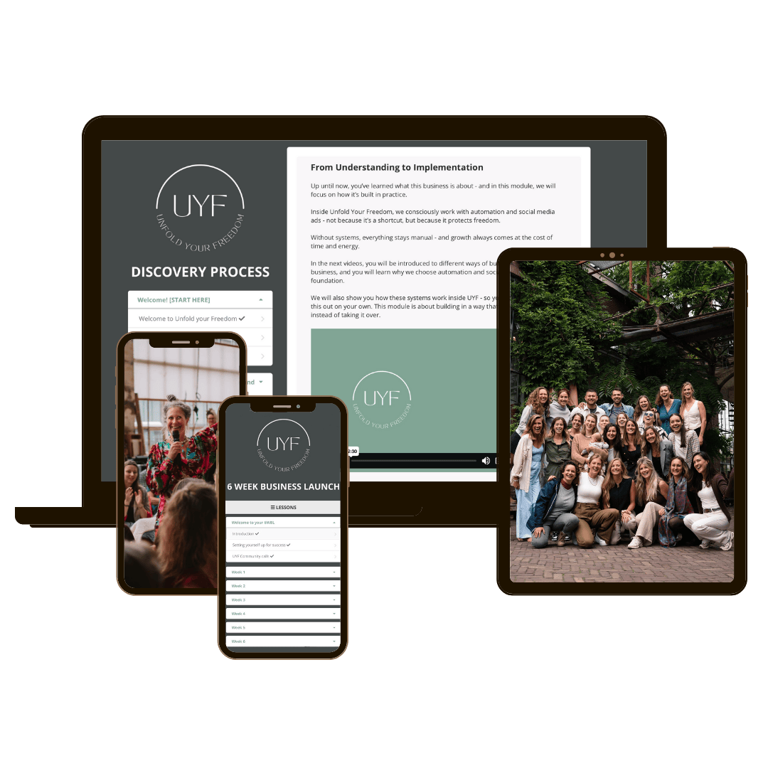 ✅ Toegang tot onze members-only Facebook groep - exclusief voor members die actief bouwen aan hun business binnen Unfold Your Freedom.